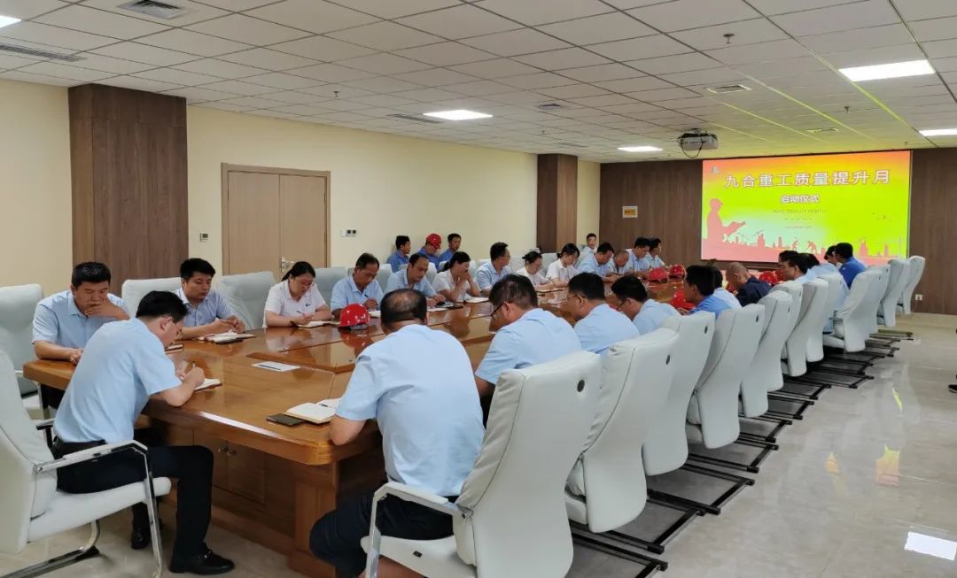 為進一步提高全員質量意識,提升質量管理水平,8月10日下午在集團二樓會議室,九合重工質量提升月啟動儀式隆重舉行。集團董事長、總經理、質檢相關人員及全體中高層近40人參會,會議由集團總經理楊世法主持。