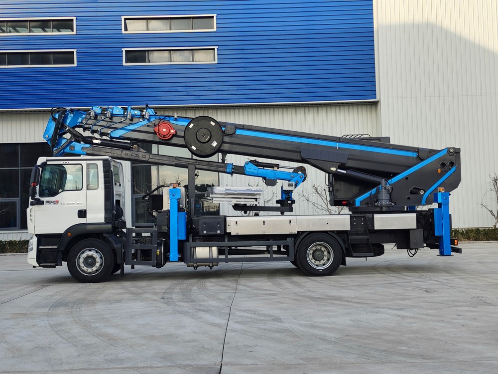 設置了可伸縮長飛臂,提高了高空跨越障礙的能力,工況適應性更強,而且在大范圍調整時操作更加迅速便捷,可以方便準確找準空中作業位置,大幅提高工作效率。